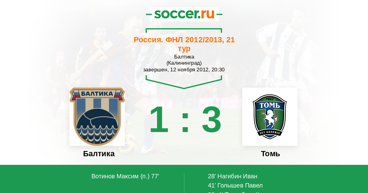 Протокол матча Балтика против Томь
