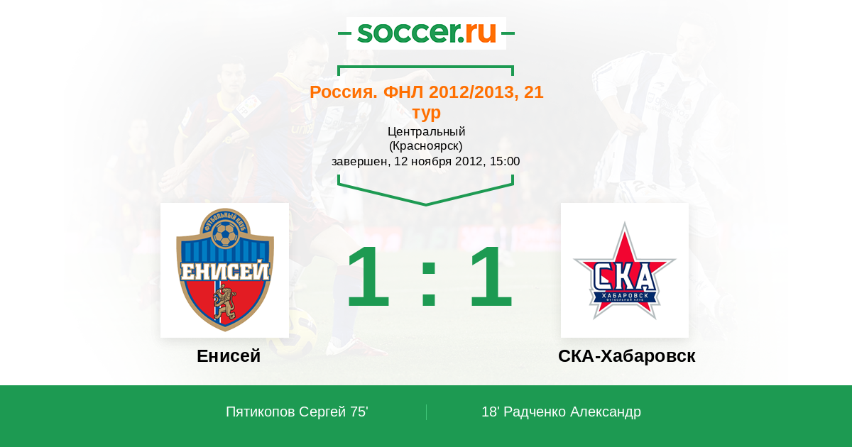 Протокол матча Енисей против СКА-Энергия