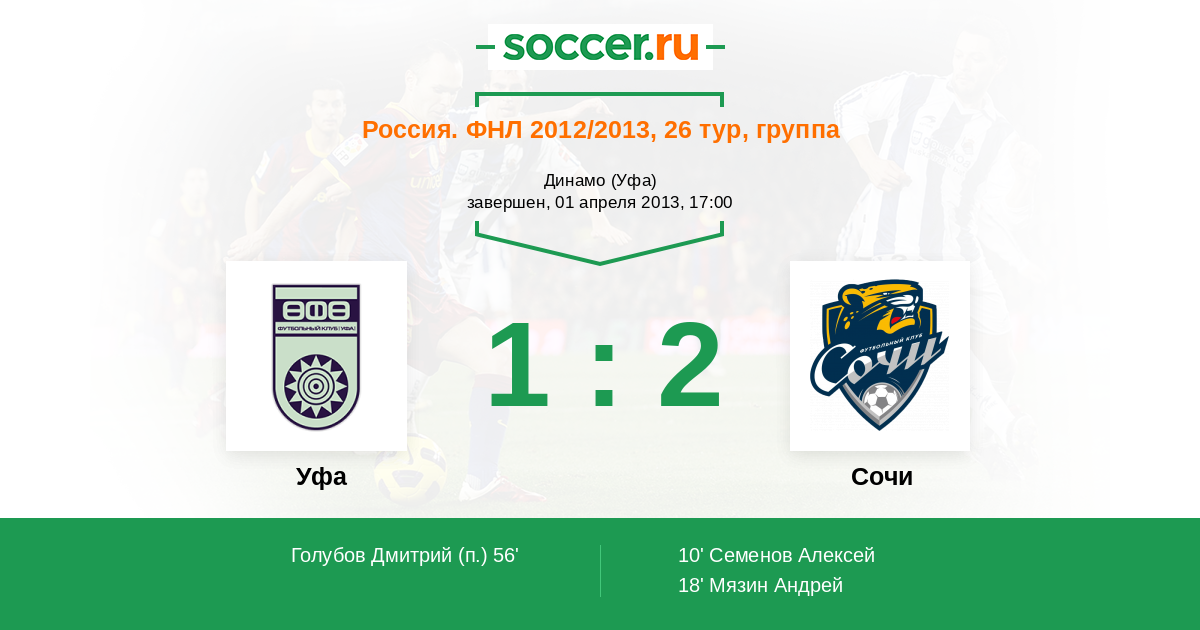 Протокол матча Уфа против Динамо СПб