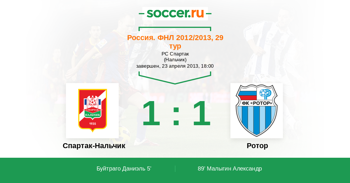 Протокол матча Спартак-Нальчик против Ротор