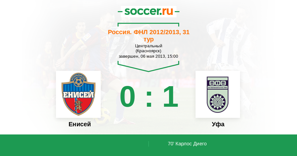 Протокол матча Енисей против Уфа