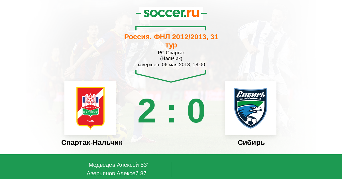 Протокол матча Спартак-Нальчик против Сибирь