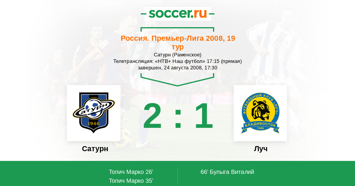 Протокол матча Сатурн против Луч
