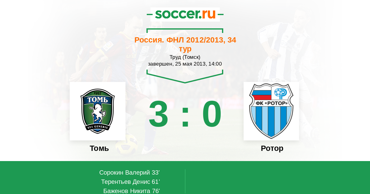 Протокол матча Томь против Ротор