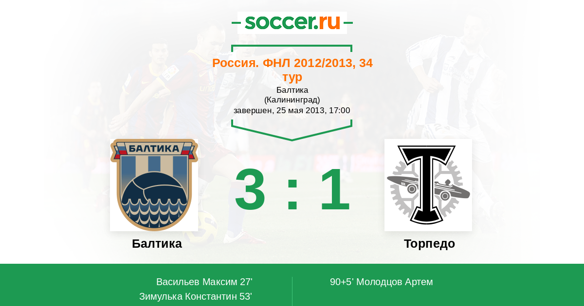 Протокол матча Балтика против Торпедо