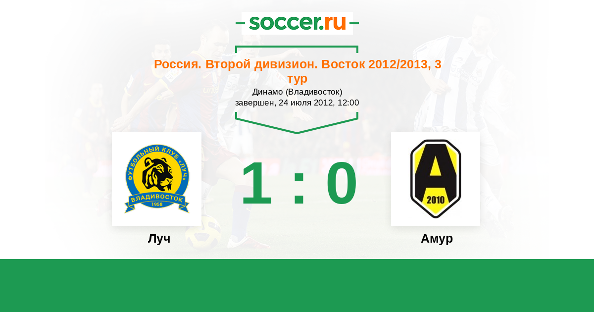Россия. 2-й дивизион. Восток 30.04.2013 Луч Логотип футбольный клуб Луч (Владивосток) 3:1 Логотип футбольный клуб Амур  (Благовещенск) Амур