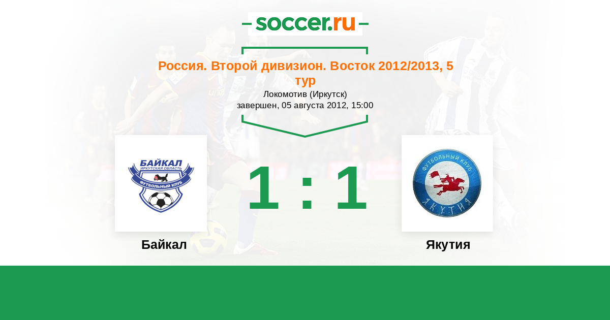 Россия. 2-й дивизион. Восток 18.09.2011 Якутия Логотип футбольный клуб Якутия (Якутск) 1:1 Логотип футбольный клуб Байкал (Иркутск) Байкал