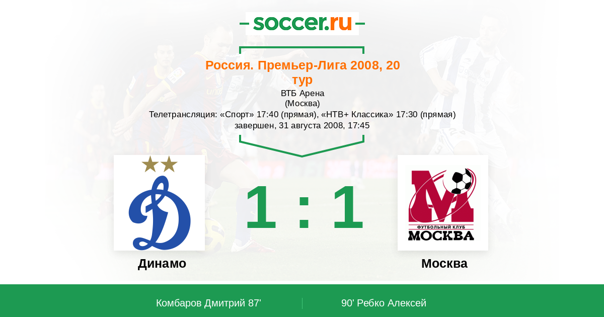Протокол матча Динамо против ФК Москва