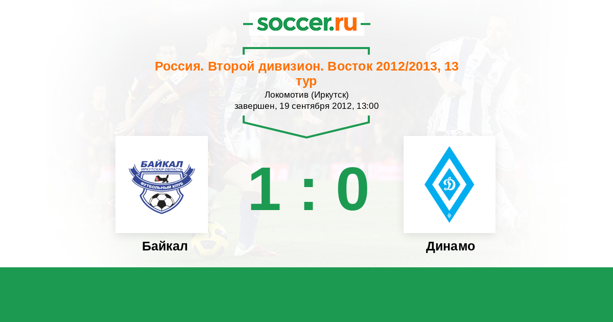 Россия. 2-й дивизион. Восток 22.05.2012 Байкал Логотип футбольный клуб Байкал (Иркутск) 1:0 Логотип футбольный клуб Динамо Барнаул Динамо Барнаул