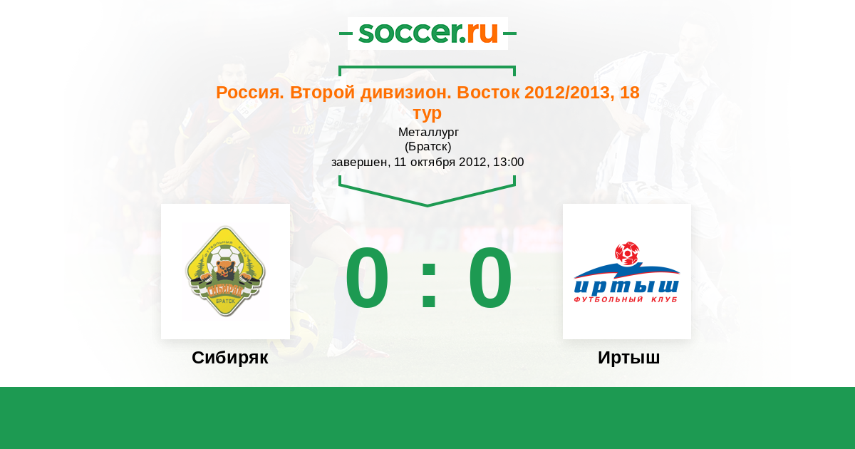 Россия. 2-й дивизион. Восток 03.08.2013 Сибиряк Логотип футбольный клуб Сибиряк (Братск) 0:0 Логотип футбольный клуб Иртыш (Омск) Иртыш