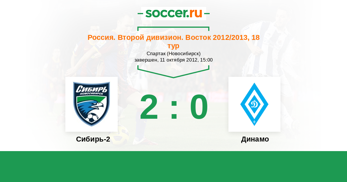 Россия. 2-й дивизион. Восток 18.05.2011 Динамо Барнаул Логотип футбольный клуб Динамо Барнаул 5:0 Логотип футбольный клуб Сибирь-2 (Новосибирск) Сибирь-2