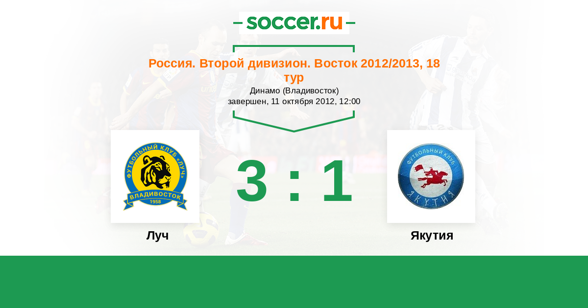 Россия. 2-й дивизион. Восток 20.08.2012 Якутия Логотип футбольный клуб Якутия (Якутск) 0:0 Логотип футбольный клуб Луч (Владивосток) Луч
