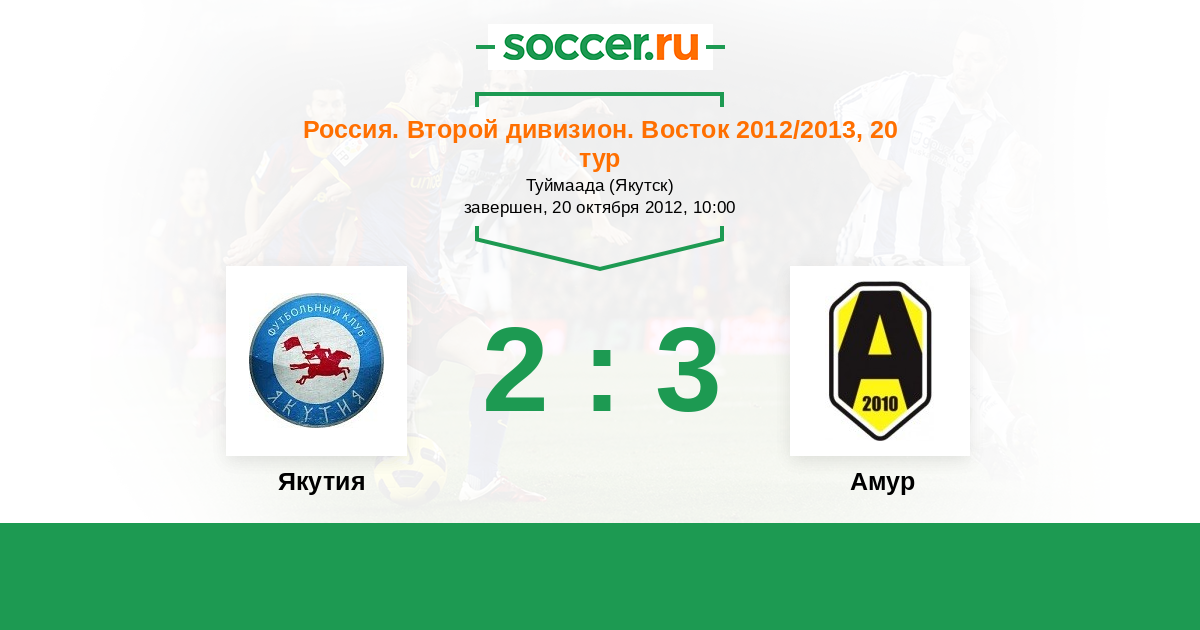 Россия. 2-й дивизион. Восток 19.05.2012 Амур Логотип футбольный клуб Амур  (Благовещенск) 3:2 Логотип футбольный клуб Якутия (Якутск) Якутия