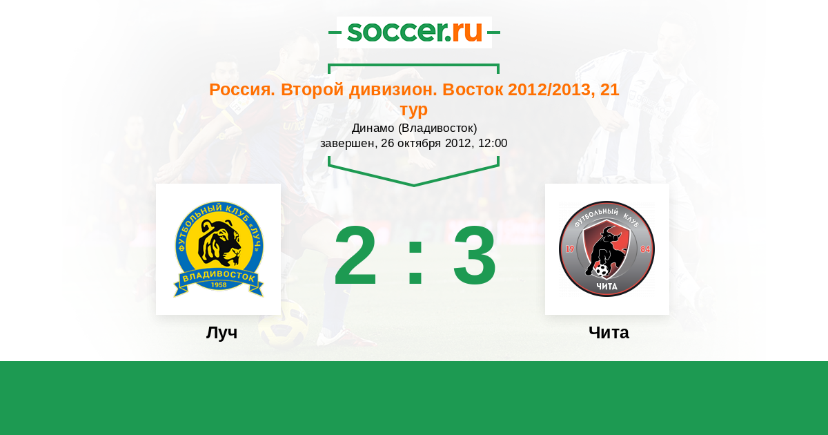 Россия. 2-й дивизион. Восток 22.04.2013 Чита Логотип футбольный клуб Чита 1:0 Логотип футбольный клуб Луч (Владивосток) Луч