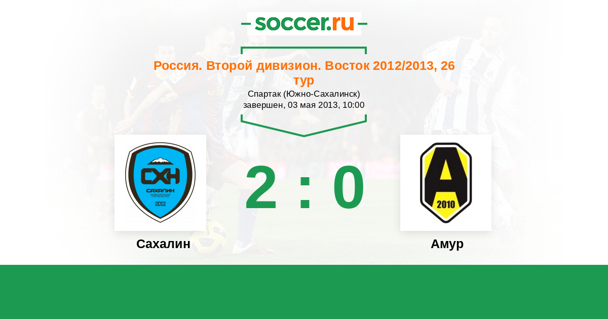 Россия. 2-й дивизион. Восток 22.09.2012 Амур Логотип футбольный клуб Амур  (Благовещенск) 0:1 Логотип футбольный клуб Сахалин (Южно-Сахалинск) Сахалин