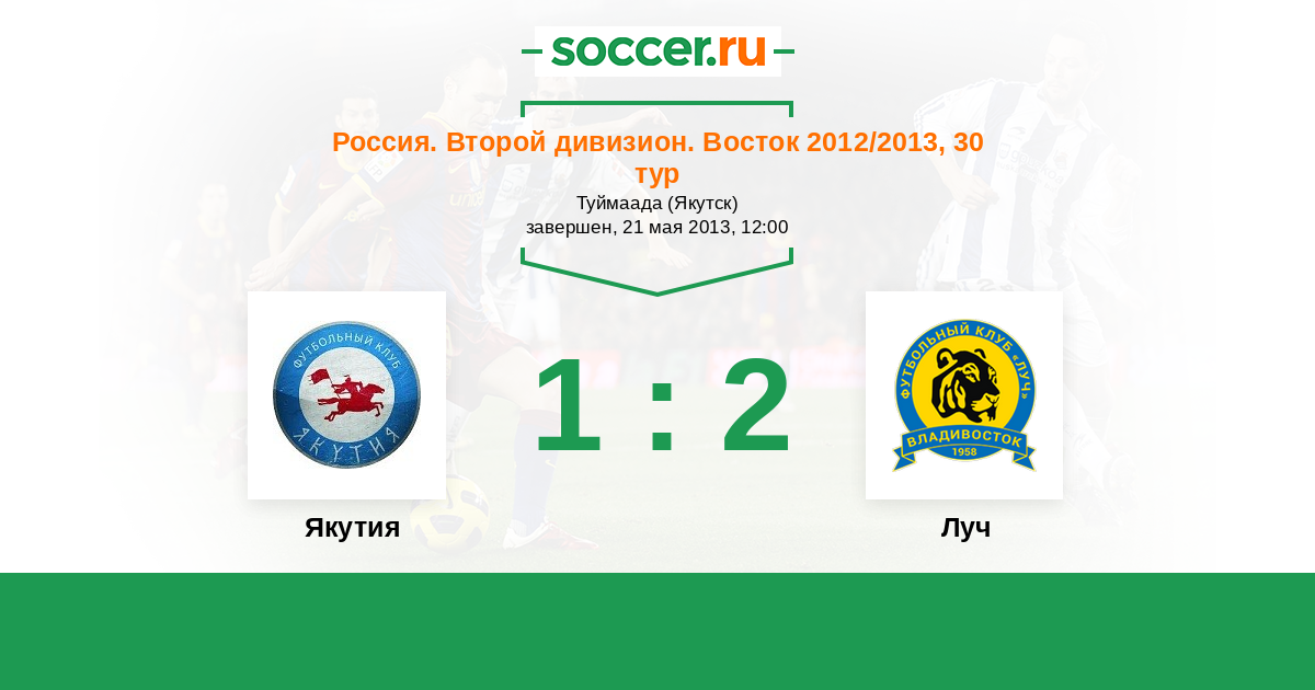 Россия. 2-й дивизион. Восток 11.10.2012 Луч Логотип футбольный клуб Луч (Владивосток) 3:1 Логотип футбольный клуб Якутия (Якутск) Якутия