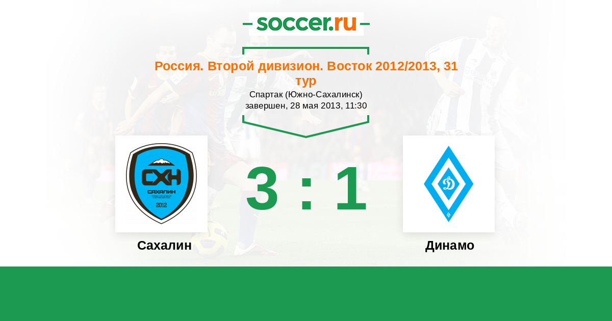 Россия. 2-й дивизион. Восток 26.07.2010 Сахалин Логотип футбольный клуб Сахалин (Южно-Сахалинск) 3:1 Логотип футбольный клуб Динамо Барнаул Динамо Барнаул