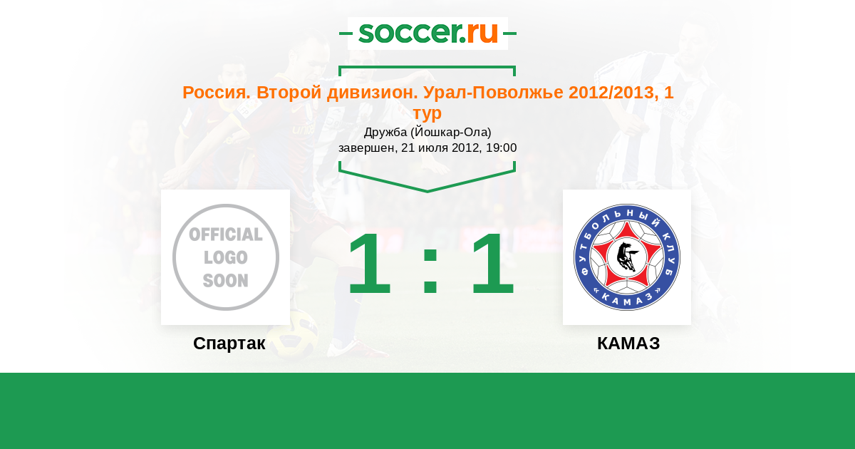 Россия. Вторая лига. Группа 4 17.10.2012 КАМАЗ Логотип футбольный клуб КАМАЗ (Набережные Челны) 1:0 Логотип футбольный клуб Спартак (Йошкар-Ола) Спартак