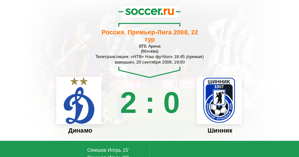 Протокол матча Динамо против Шинник