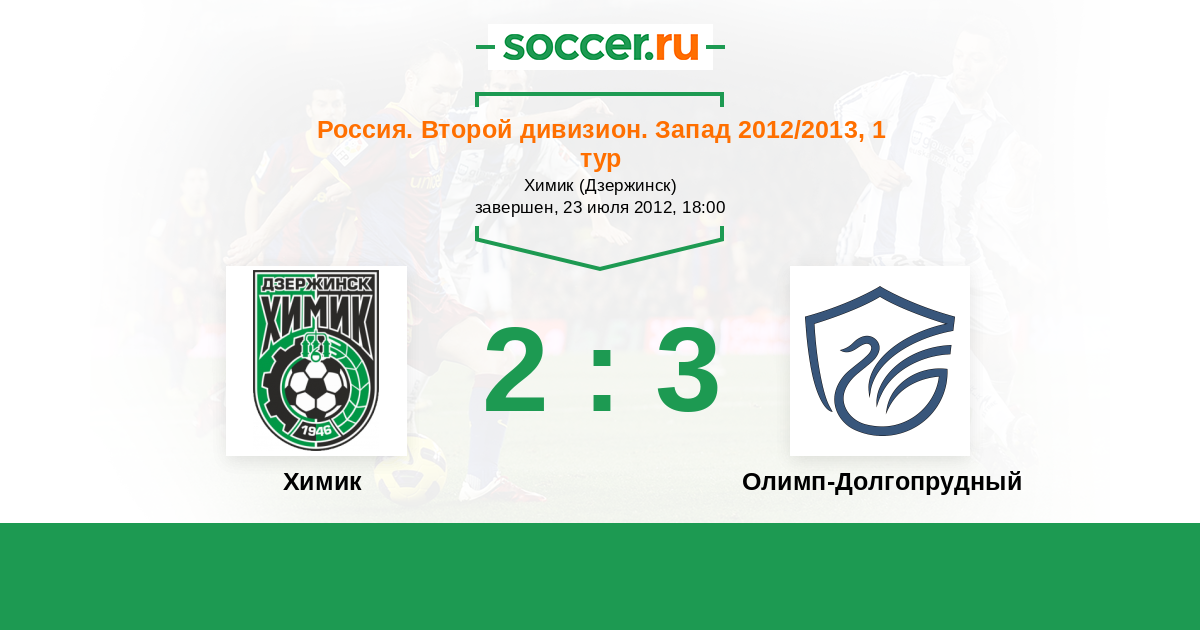 Россия. Вторая лига. Группа 2 28.05.2013 Долгопрудный Логотип футбольный клуб Долгопрудный 3:1 Логотип футбольный клуб Химик (Дзержинск) Химик