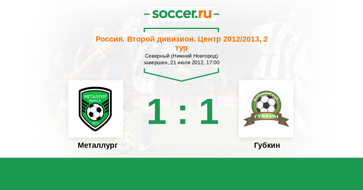 Россия. Вторая лига. Группа 3 11.10.2012 Губкин Логотип футбольный клуб Губкин 1:0 Логотип футбольный клуб Металлург (Выкса) Металлург