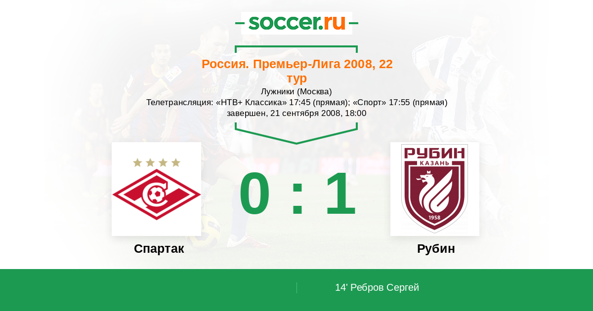 Протокол матча Спартак против Рубин