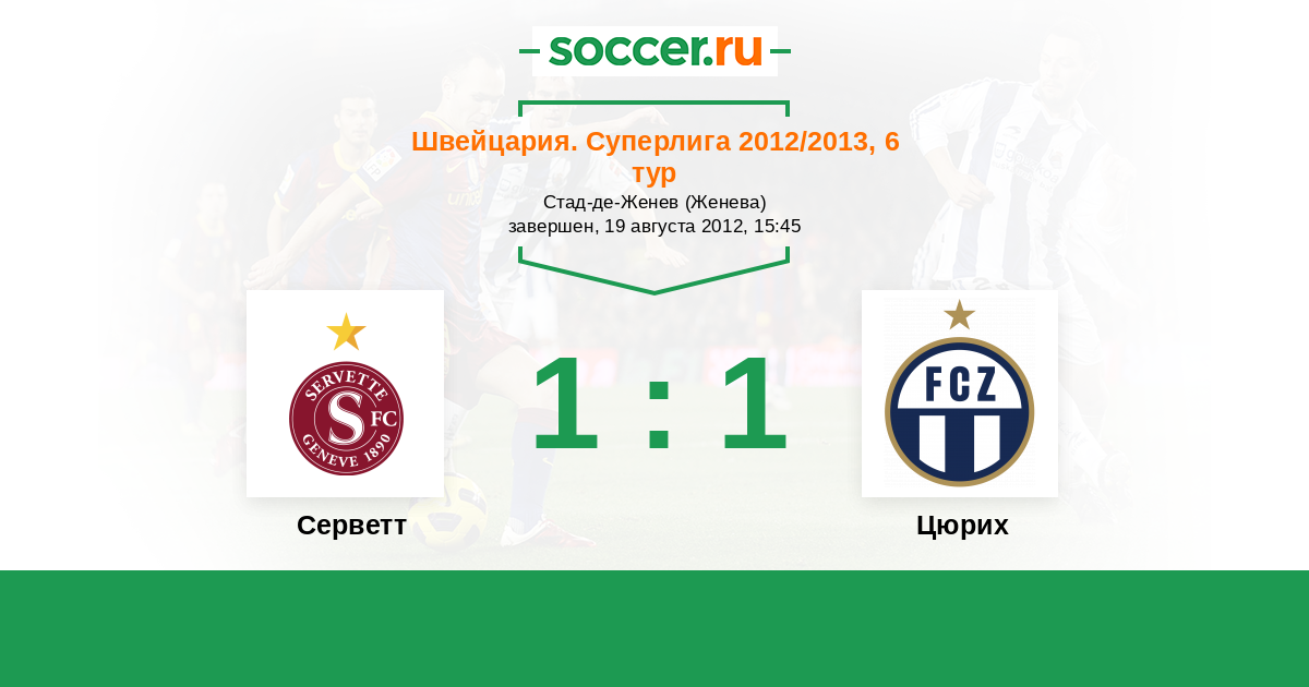 Швейцария. Суперлига 18.03.2012 Серветт Логотип футбольный клуб Серветт (Женева) 1:1 Логотип футбольный клуб Цюрих Цюрих
