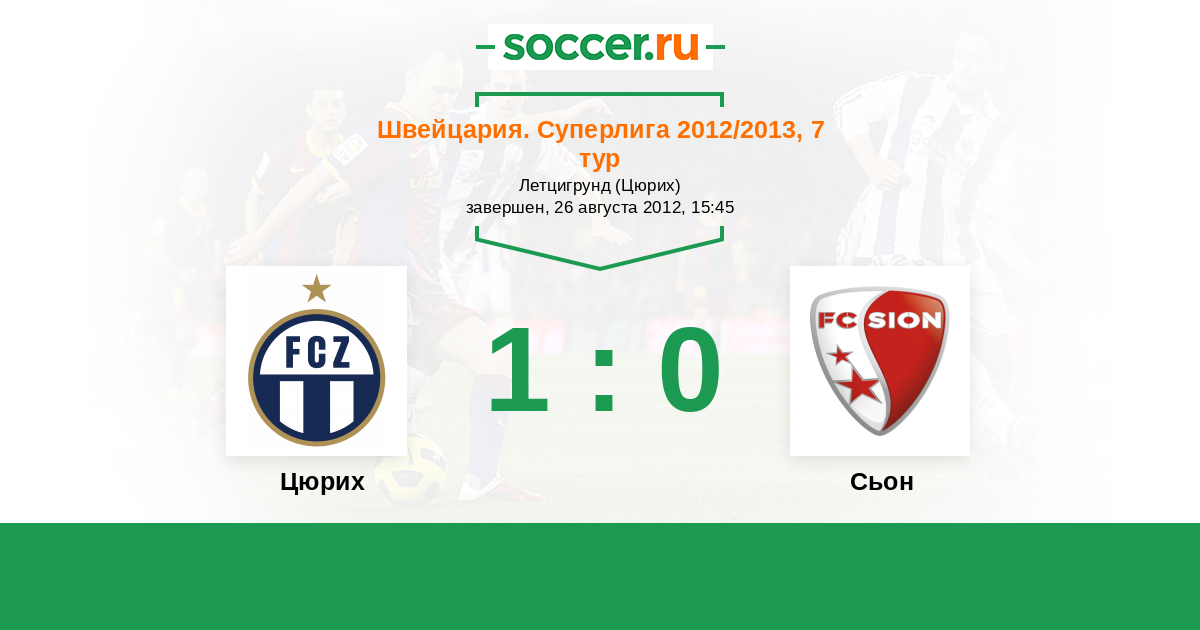 Швейцария. Суперлига 30.09.2012 Сьон Логотип футбольный клуб Сьон 2:2 Логотип футбольный клуб Цюрих Цюрих