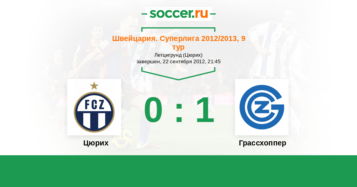 Швейцария. Суперлига 02.12.2012 Грассхоппер Логотип футбольный клуб Грассхоппер (Цюрих) 1:0 Логотип футбольный клуб Цюрих Цюрих