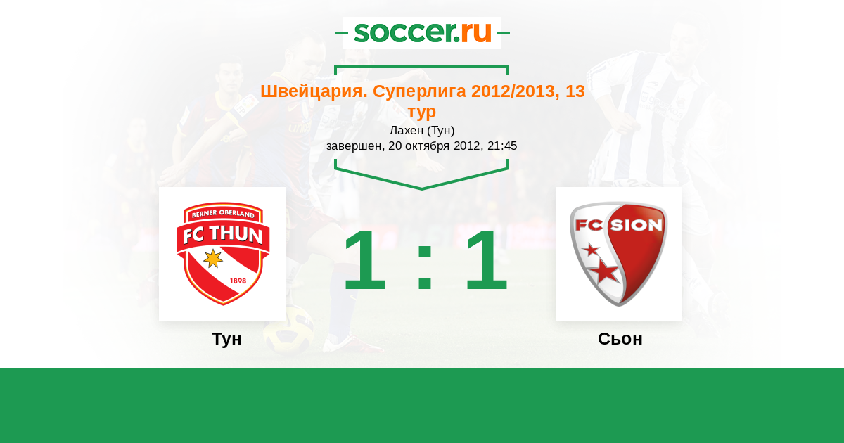 Швейцария. Суперлига 19.10.2013 Тун Логотип футбольный клуб Тун 1:0 Логотип футбольный клуб Сьон Сьон