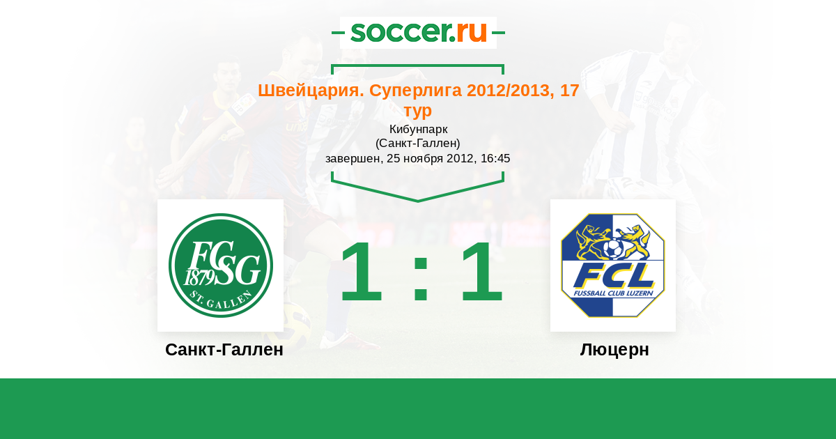 Швейцария. Суперлига 11.08.2012 Люцерн Логотип футбольный клуб Люцерн 1:1 Логотип футбольный клуб Санкт-Галлен Санкт-Галлен