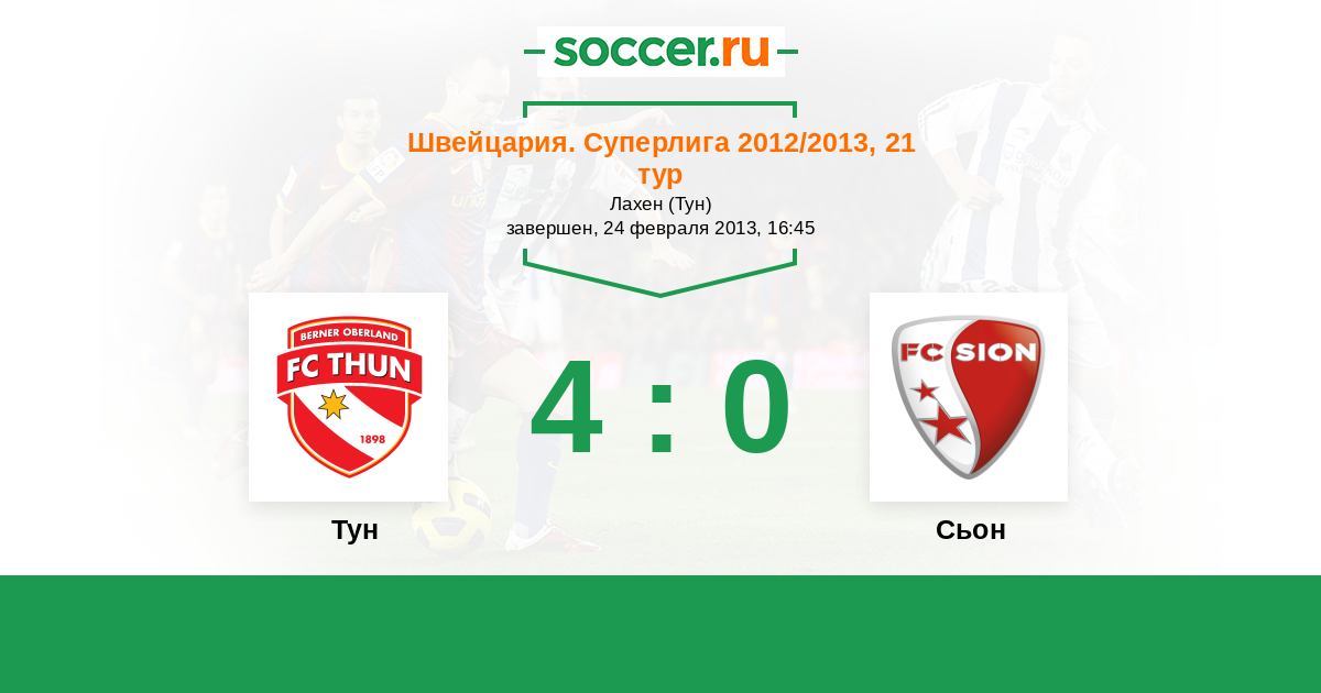 Швейцария. Суперлига 22.02.2014 Тун Логотип футбольный клуб Тун 3:1 Логотип футбольный клуб Сьон Сьон