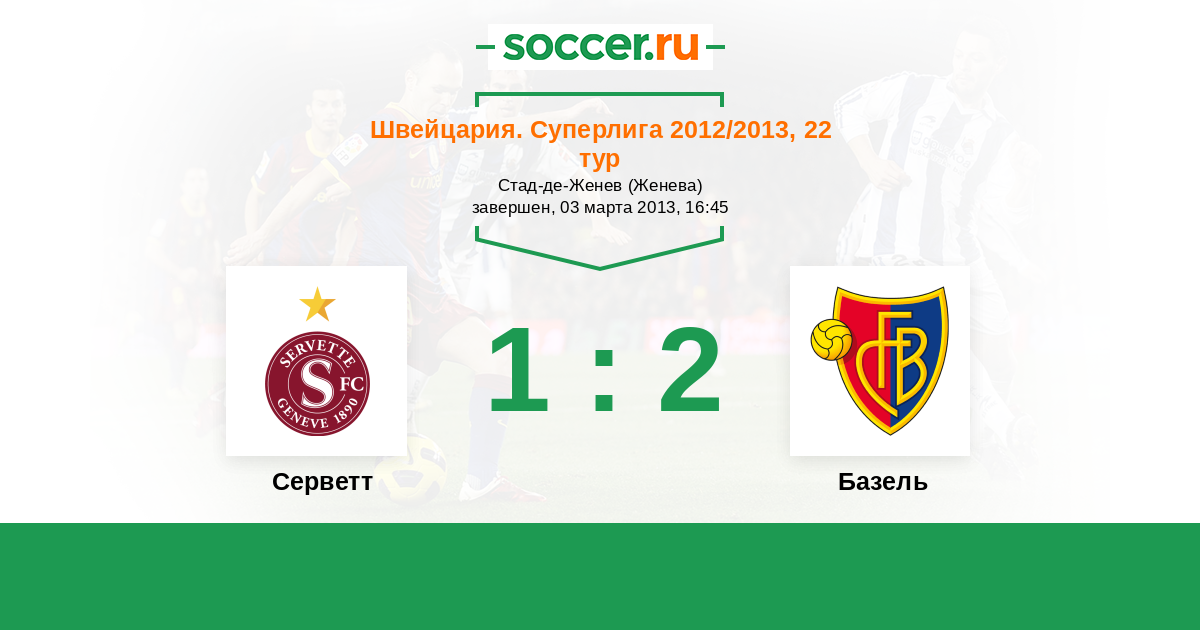 Швейцария. Суперлига 20.05.2012 Серветт Логотип футбольный клуб Серветт (Женева) 2:1 Логотип футбольный клуб Базель Базель