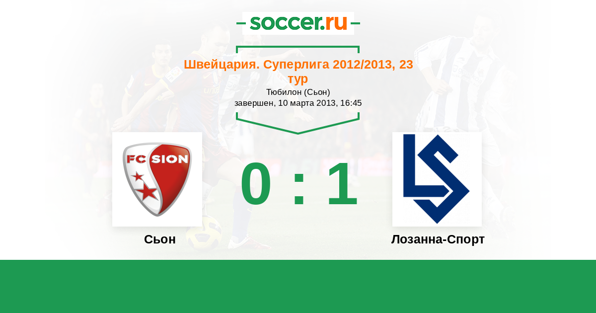 Швейцария. Суперлига 27.10.2012 Сьон Логотип футбольный клуб Сьон 1:1 Логотип футбольный клуб Лозанна-Спорт Лозанна-Спорт