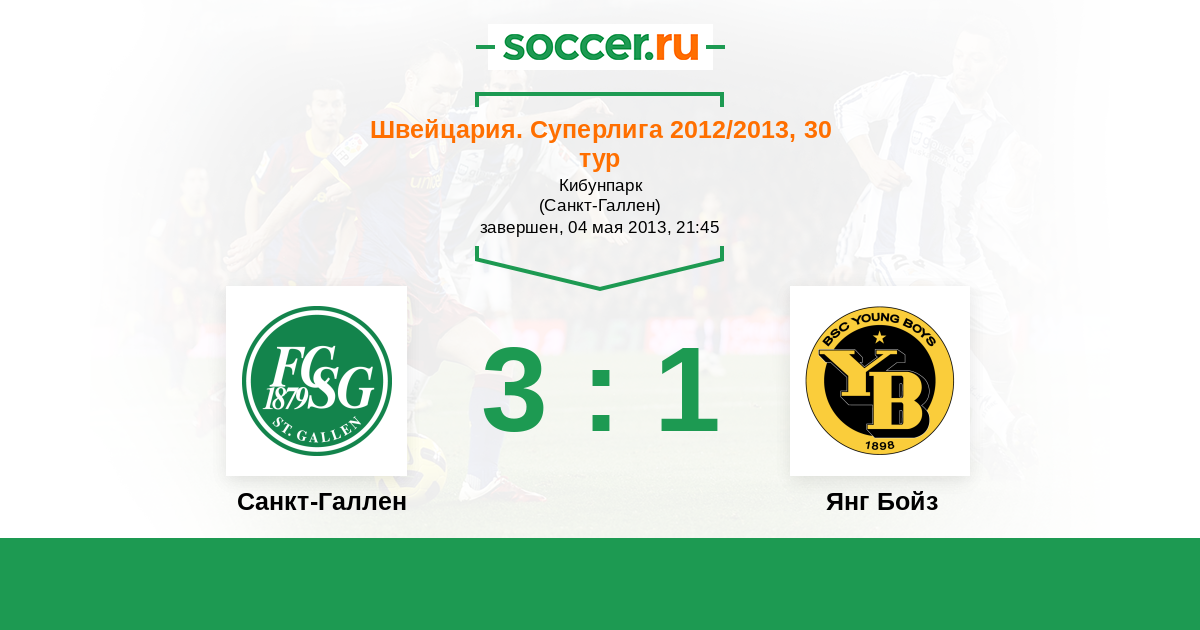 Швейцария. Суперлига 11.04.2015 Санкт-Галлен Логотип футбольный клуб Санкт-Галлен 3:1 Логотип футбольный клуб Янг Бойз (Берн) Янг Бойз