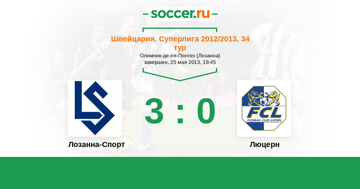 Швейцария. Суперлига 13.04.2013 Люцерн Логотип футбольный клуб Люцерн 1:0 Логотип футбольный клуб Лозанна-Спорт Лозанна-Спорт