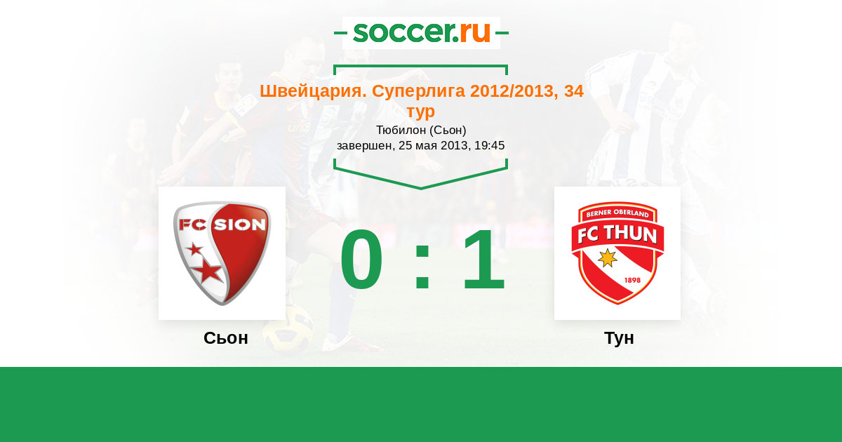 Швейцария. Суперлига 20.10.2012 Тун Логотип футбольный клуб Тун 1:1 Логотип футбольный клуб Сьон Сьон