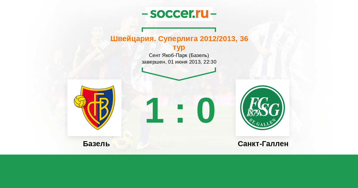Швейцария. Суперлига 07.04.2013 Санкт-Галлен Логотип футбольный клуб Санкт-Галлен 1:1 Логотип футбольный клуб Базель Базель