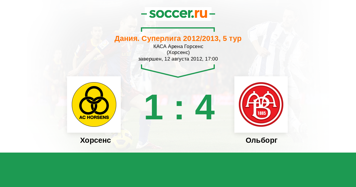 Дания. Суперлига 28.03.2013 Хорсенс Логотип футбольный клуб Хорсенс 2:2 Логотип футбольный клуб Ольборг Ольборг