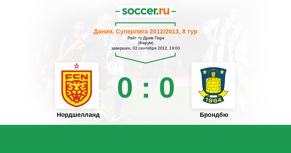 Дания. Суперлига 02.12.2012 Нордшелланд Логотип футбольный клуб Нордшелланд (Фарум) 3:0 Логотип футбольный клуб Брондбю (Брённбю) Брондбю