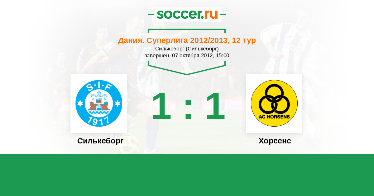 Дания. Суперлига 25.09.2011 Силькеборг Логотип футбольный клуб Силькеборг 1:1 Логотип футбольный клуб Хорсенс Хорсенс