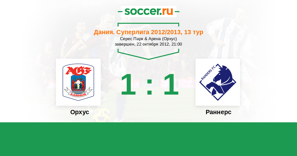 Дания. Суперлига 05.10.2013 Раннерс Логотип футбольный клуб Раннерс 2:2 Логотип футбольный клуб Орхус Орхус