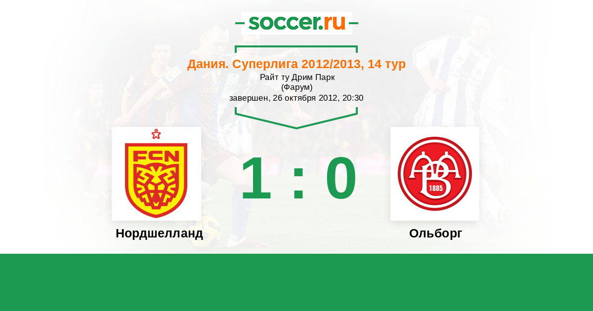 Дания. Суперлига 27.10.2014 Нордшелланд Логотип футбольный клуб Нордшелланд (Фарум) 0:1 Логотип футбольный клуб Ольборг Ольборг