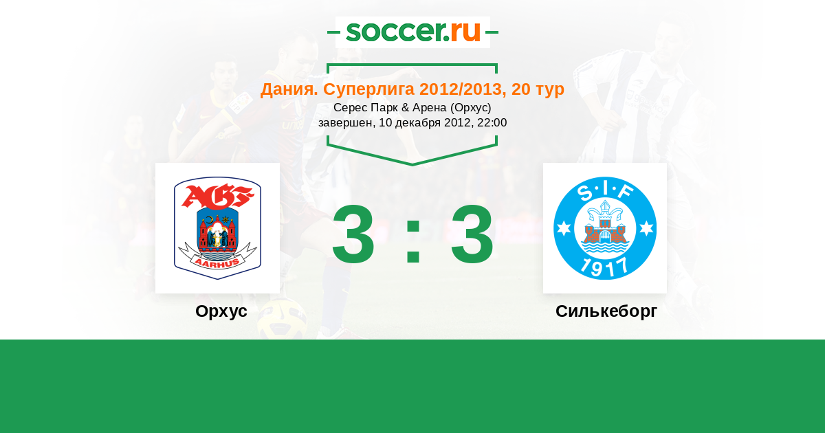 Дания. Суперлига 01.09.2012 Силькеборг Логотип футбольный клуб Силькеборг 0:4 Логотип футбольный клуб Орхус Орхус