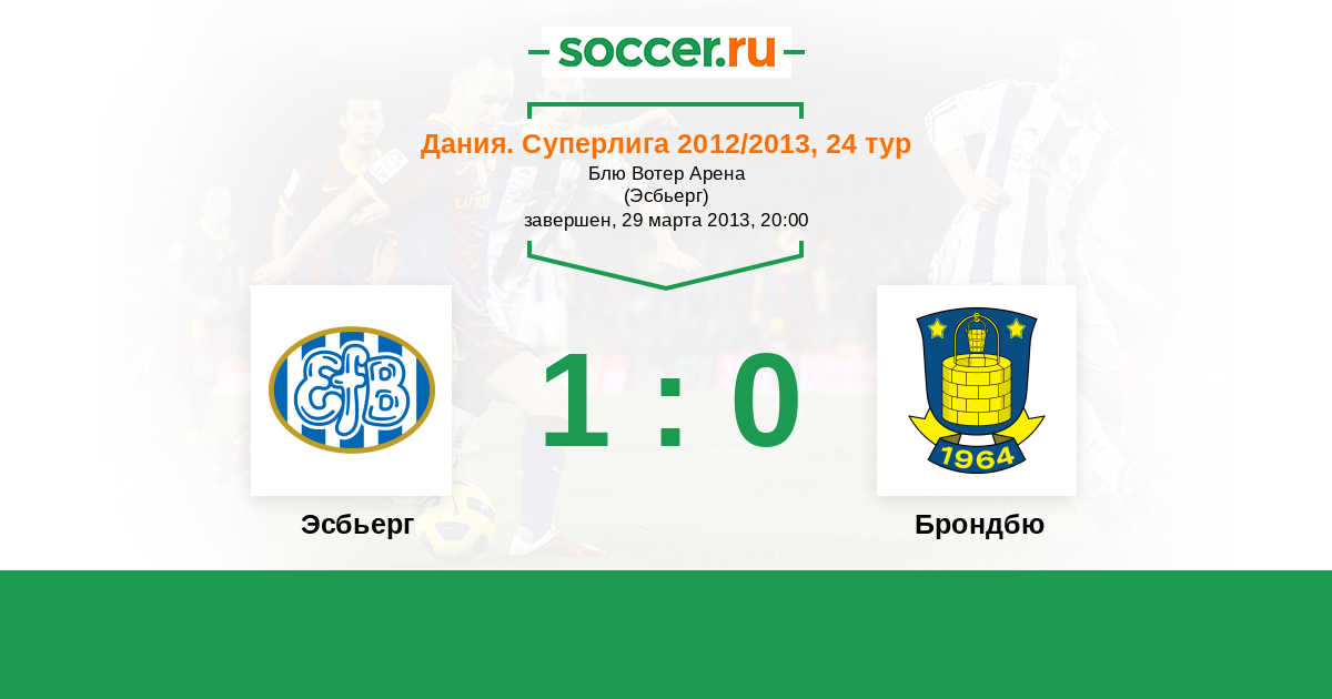 Дания. Суперлига 26.08.2012 Брондбю Логотип футбольный клуб Брондбю (Брённбю) 1:1 Логотип футбольный клуб Эсбьерг Эсбьерг