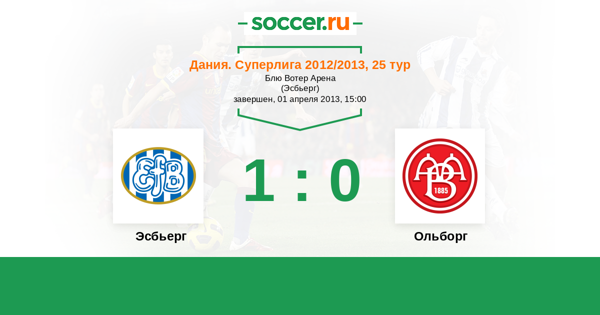 Дания. Суперлига 24.09.2012 Ольборг Логотип футбольный клуб Ольборг 0:2 Логотип футбольный клуб Эсбьерг Эсбьерг