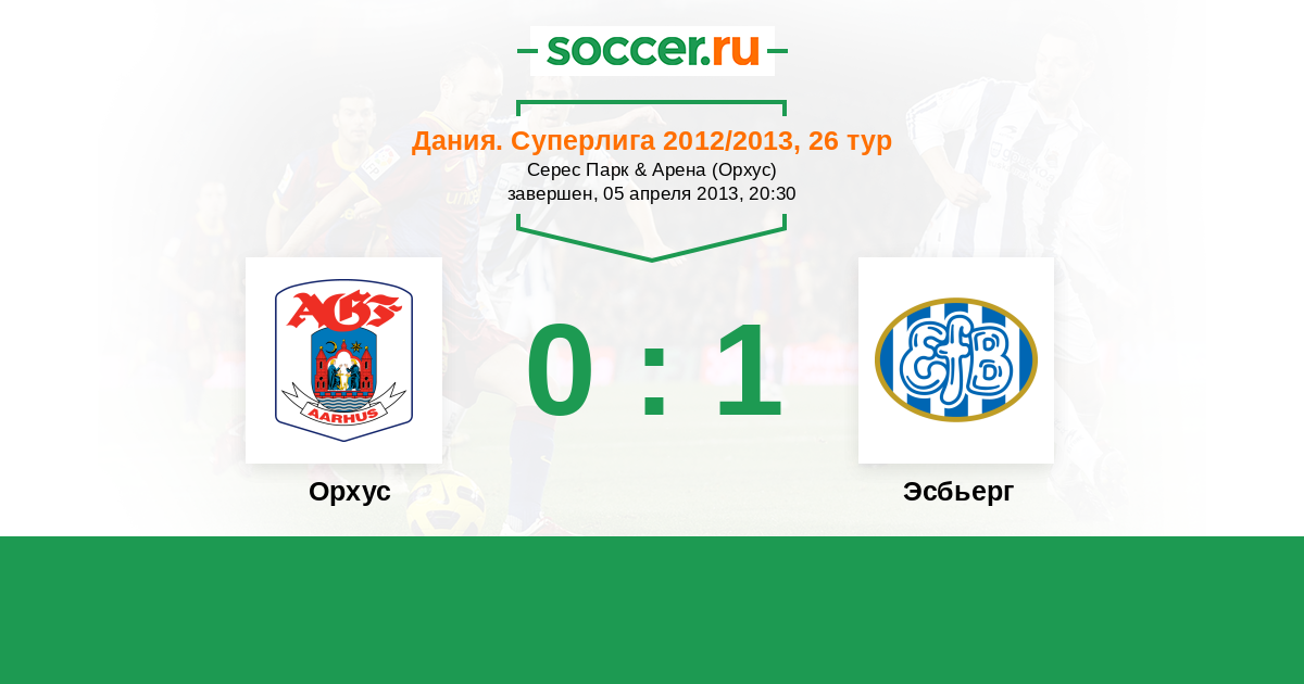 Дания. Суперлига 23.07.2012 Орхус Логотип футбольный клуб Орхус 0:0 Логотип футбольный клуб Эсбьерг Эсбьерг