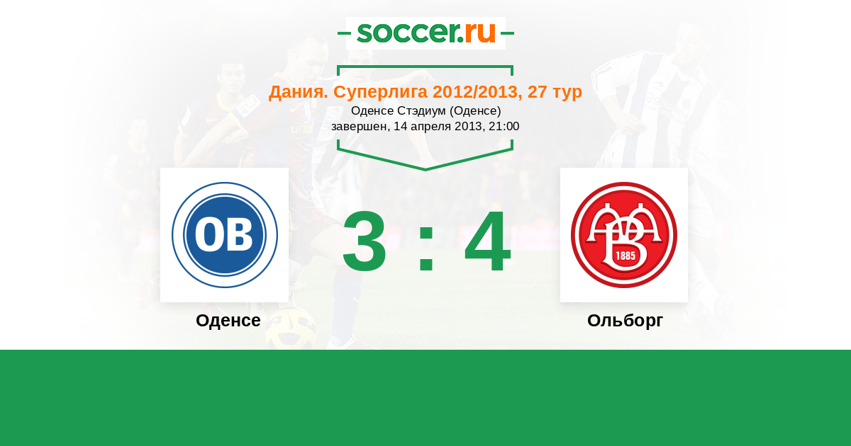 Дания. Суперлига 11.08.2013 Ольборг Логотип футбольный клуб Ольборг 0:0 Логотип футбольный клуб Оденсе Оденсе