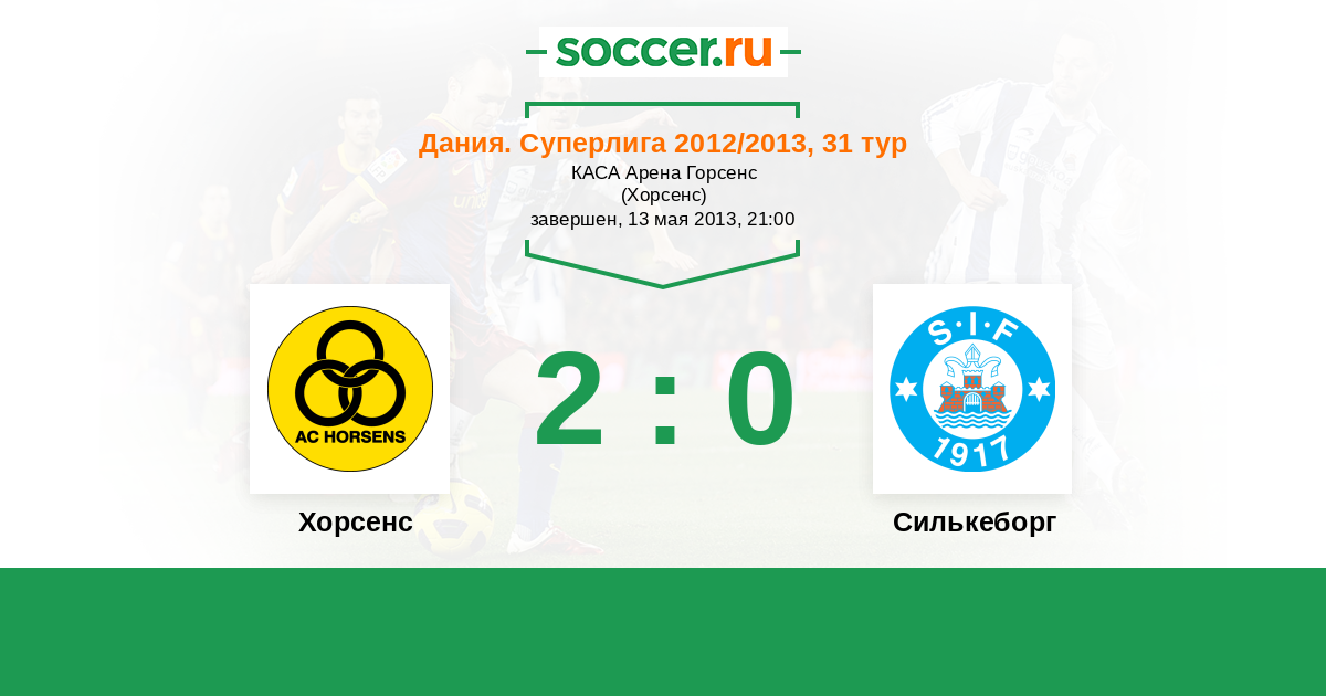 Дания. Первый дивизион 08.08.2013 Хорсенс Логотип футбольный клуб Хорсенс 1:0 Логотип футбольный клуб Силькеборг Силькеборг