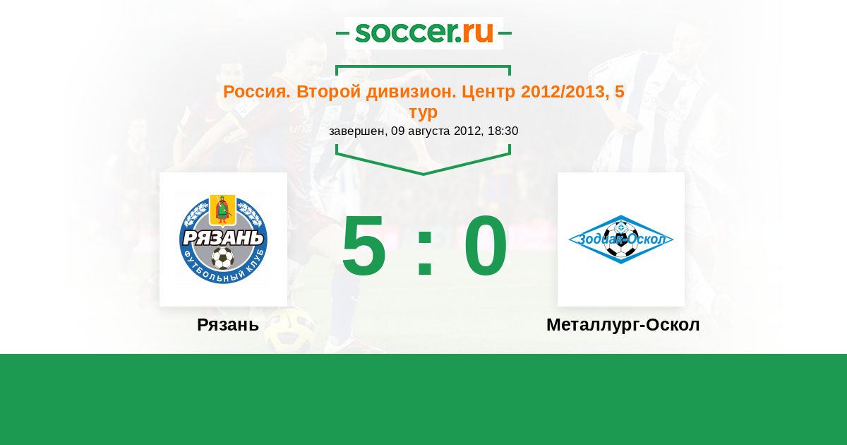 Россия. Вторая лига. Группа 3 30.07.2013 Металлург-Оскол Логотип футбольный клуб Металлург-Оскол (Старый Оскол) 1:2 Логотип футбольный клуб Звезда Рз (Рязань) Звезда Рз